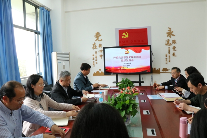 4月23日下午,外国语学院教工行政党支部组织生活会在外国语学院文科楼A331召开。支部9名党员参加了本次组织生活会,徐岩副校长出席并开展指导。