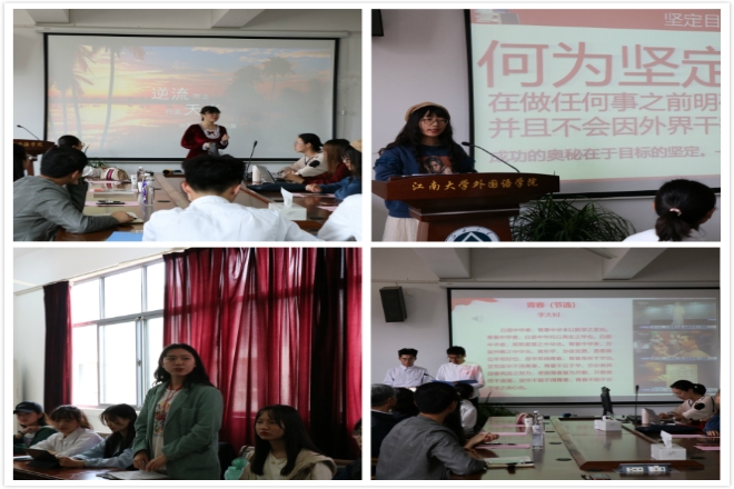 首先,英语1904团支书孟晓钰分享了《致青春》的主题团课。她将团课分为“红色篇”“绿色篇”“金色篇”三个部分。在“红色篇”中,她向大家讲述了邓恩铭、邓中夏、周恩来等人的革命故事,“红色篇”是希望,激情,魄力,斗志与爱国之心的体现;在“绿色篇”中,守护丹顶鹤女孩徐卓的故事令人敬佩;“金色篇”是奉献与坚守的象征,英勇的战士陈祥榕,誓死捍卫祖国疆土,他是人民的好战士,令父亲为之自豪的好儿子。主题团课结束后,在场学生就“青春与梦想”谈了自己的感想:新时代青年应当坚定理想信念,勇于创新创造,锤炼高尚品格,练就过硬本领,永远保持着艰苦奋斗的精神。