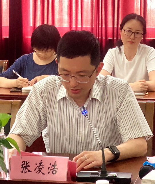 张凌浩致欢迎辞。首先,他对董洪川的莅临指导表示衷心感谢。张凌浩简要介绍了江南大学及外国语学院的发展历程和现状、专业建设与人才培养情况,重点介绍了江南大学积极响应课程思政改革号召,按照校院整体推进、专业具体实施、以教师为主体、以课程为依托全面推进课程思政,全方位引领课程思政体系化、规范化、常态化建设情况。最后,张凌浩希望四川外国语大学能多分享经验,多交流,多合作,共同推进课程思政建设。