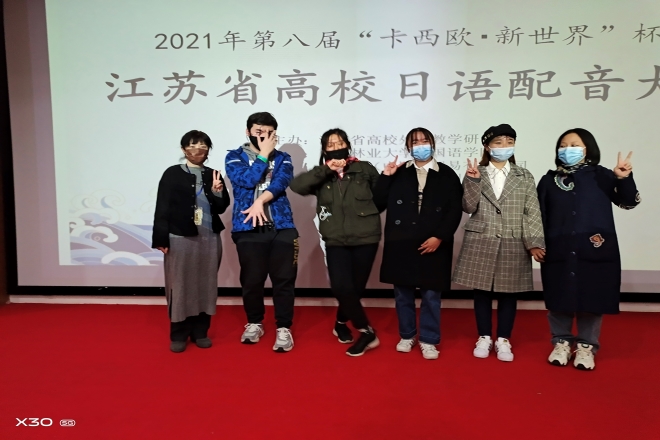 11月13日,由江苏省高校外语教学研究会主办、南京林业大学外国语学院承办的第八届“卡西欧・新世界”杯江苏省高校日语配音大赛在南京林业大学举行。外国语学院19级学生杨清妍、赵秋棋、段祥乐、翟晋津、杨钰滢等五位同学在日语系中西由美子和田村恭平等老师的悉心指导下,斩获该项赛事的一等奖。