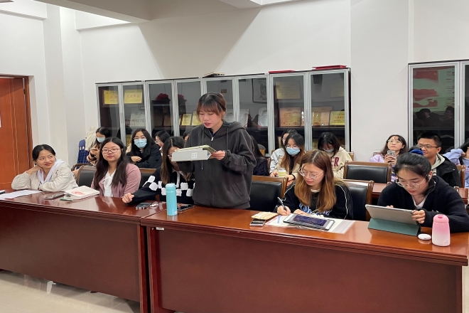 10月28日,外国语学院“研途奋进”第十期活动在文科楼A349成功举行。2022级全体硕士研究生及部分2021级硕士研究生参与了本次活动。此次活动的主题是“研途漫漫沐党辉 踔厉奋发迎盛会”中国共产党第二十次全国代表大会精神学习分享会。三位研究生党支部书记对党的二十大报告进行了领学和解读,参会同学也进行了学习心得分享。