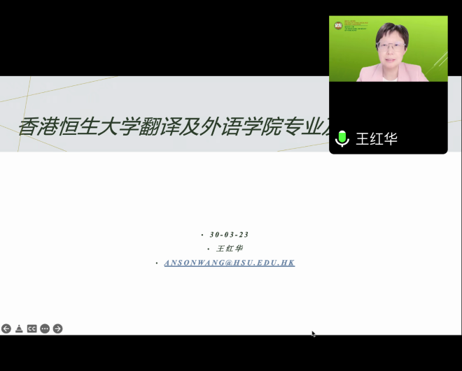 3月30日,外国语学院在线上举行专题学术讲座,本期讲座邀请香港恒生大学王红华博士进行主题分享。外国语学院院长方文开,党委副书记刘伯贤,副院长顾琦一、朱义华、谢竞贤等参加线上讲座。本期讲座由学院英语系主任孙志祥教授主持。