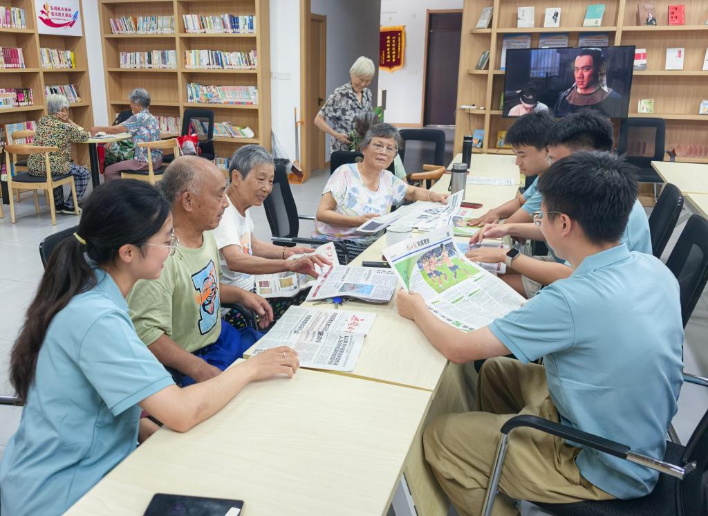 敬老陪伴暖人心,传递青春“数智温度”。实践团注重科技与人文并行、服务与学习共进。下午,成员们来到活动中心多功能室,开展“乒乓会友,书香传情”敬老主题活动。同学们与社区居民共同进行乒乓球友谊赛,陪伴阅读、朗读新闻,还在交流中耐心帮助老人掌握智能手机基础应用,如视频通话、查看天气、线上购药等,用实际行动缩小“数字鸿沟”,传递“青老共融”的温暖情谊,展现物联网学子的另一面——不仅懂技术,更懂人心。