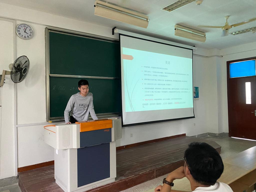 最后,考研至本校药学专业的丁若洋就如何制定复习计划展开分享,考研英语取得81分高分的他强调单词是英语复习的基础,必须放在语境中去记忆,最终把文章读通读透才是提高做题准确率的关键。同时他认为政治的复习固然很重要,但不应该占据太多时间,要把大量的时间留给难度较大的专业课,才能与别人拉开距离。谈到考研调剂,他认为第一志愿落选没有关系,要时刻关注调剂相关信息,不放弃任何希望。