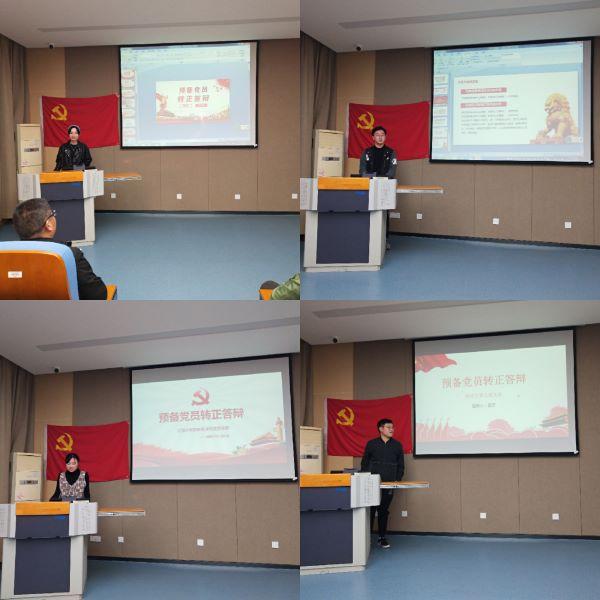 本次答辩会学院共有10名中共预备党员参加,答辩流程为预备党员展示汇报、委员提问和党员应知应会知识问答三个环节。每位预备党员按照顺序依次上台,就一年来思想、学习、工作、生活等表现情况以及不足和改进之处做简要汇报。答辩委员就答辩个人的表述进行相关提问,考察预备党员在理论学习、主题教育过程中的心得体会以及在一年中的进步和先进作用的发挥。针对答辩委员提出的有关预备期的实际表现和党员应知应会的知识,预备党员们实事求是,积极作答。最后,答辩委员根据10名预备党员在预备期内的表现及现场的答辩情况进行认真评议,并以无记名投票的方式进行等级评定。