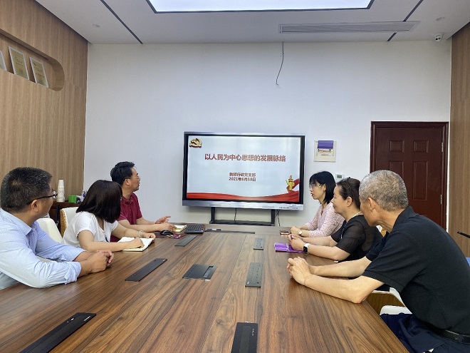 6月18日上午,教师行政党支部开展支部书记讲党课学习活动,党课的主题是“以人民为中心思想的发展脉络”,由行政支部书记徐贻学主讲,行政支部全体党员参加,学院党委联系人、党委副书记白冰参加学习活动。