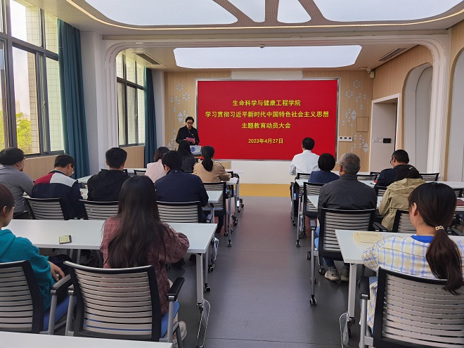4月27日下午,生命科学与健康工程学院召开学习贯彻习近平新时代中国特色社会主义思想主题教育动员大会。学院党委书记史志洪就主题教育各项工作进行了全面部署。学院党政班子成员、全体党委委员、师生党支部书记和支部委员、师生党员代表参加会议,会议由学院院长尹健主持。