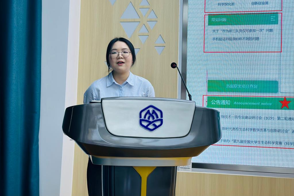 曾获全国大学生生命科学竞赛(2022,科学探究类)二等奖的蒋杰娟从比赛的决心、用心及恒心的角度切入,告知同学们比赛前期需要阅读大量文献,学会撰写综述;中期要不停地做实验,对失败的实验进行及时复盘和校正,认真填写实验记录;后期要精心准备答辩,向课题组师兄师姐寻求帮助,预设评委老师的可能提问,做好充分的准备工作。