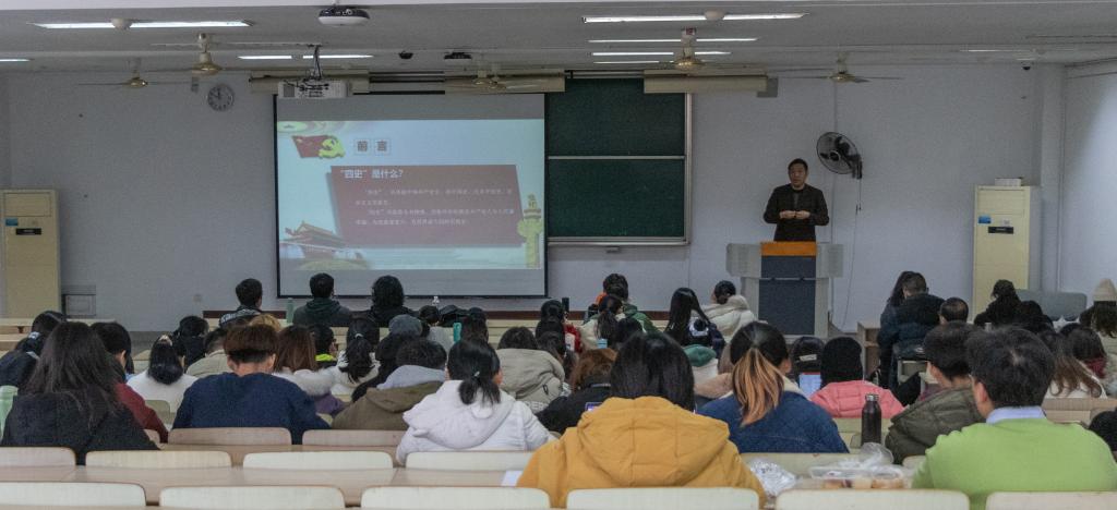 首先,刘淼从“四史是什么?为什么要学习四史?”为切入点,结合关键的历史事件和人物,从“建党的历史背景、十月革命送来马克思主义、焕然一新的中国革命和新中国的建设与发展”四个方面深入讲解中国共产党的发展壮大的历程。他表示,砥砺前行99年,从站起来、富起来到强起来的过程中,党始终经历着血与火的洗礼,而正是这血与火,引领中华民族从苦难一步步走向辉煌。