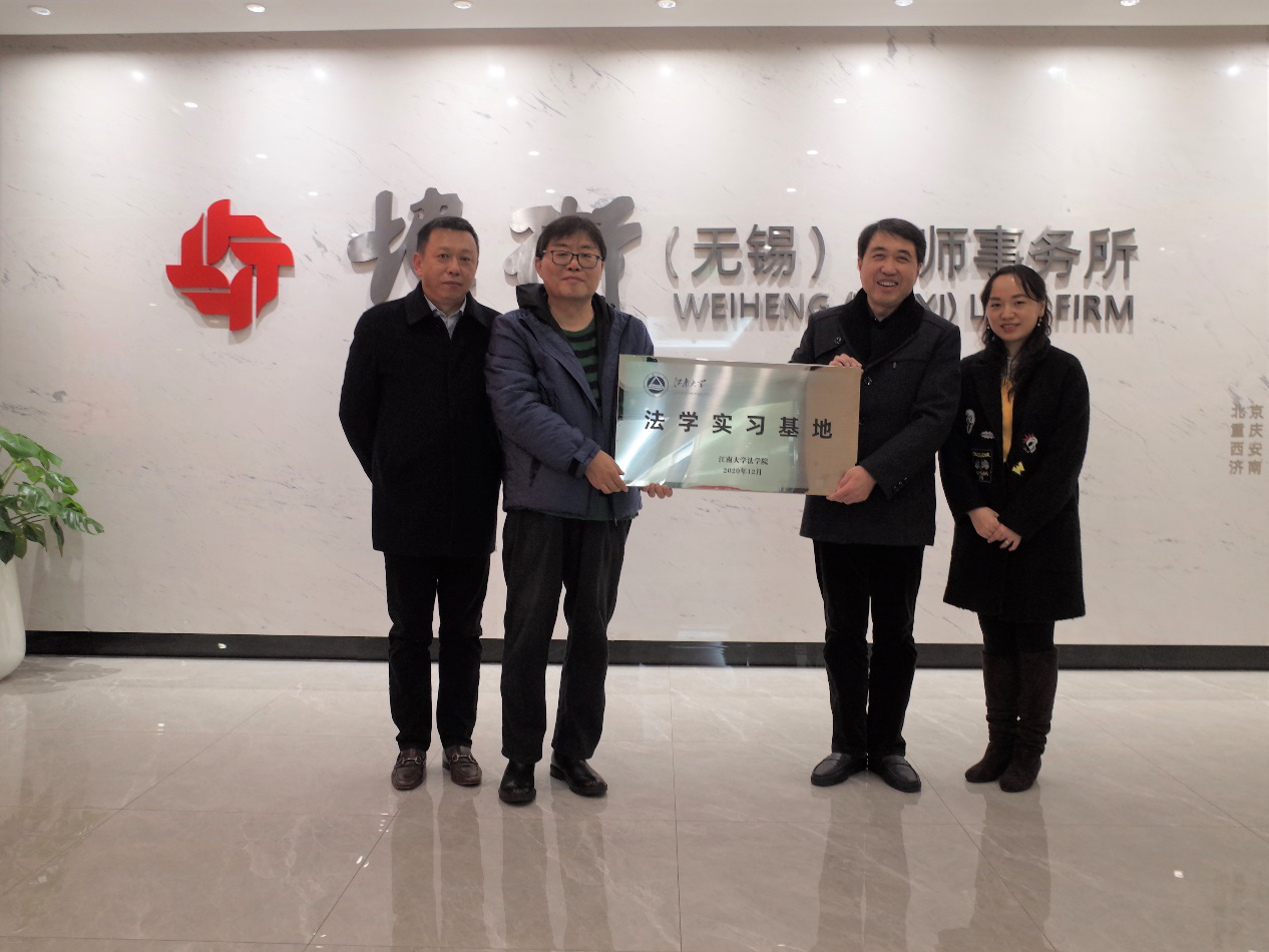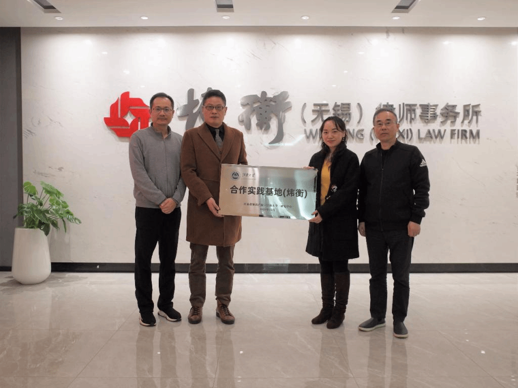 为加强“产学研”合作,实现优势互补、共同发展,2020年12月11日,江南大学法学院、江苏省知识产权(江南大学)研究中心校外合作实践基地与炜衡无锡律师事务所签约仪式顺利举行。法学院党委书记杨杰、副院长叶敏与炜衡无锡律师事务所高晓春主任、周国忠主任、高级合伙人郑歧等出席签约仪式。