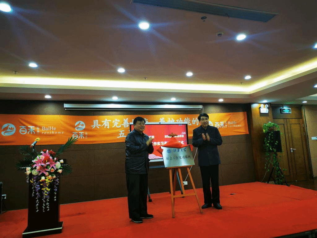 最后,李俏与赵娟共同签署社会工作实习基地协议,杨杰与唐国强共同为社会工作实习基地揭牌。