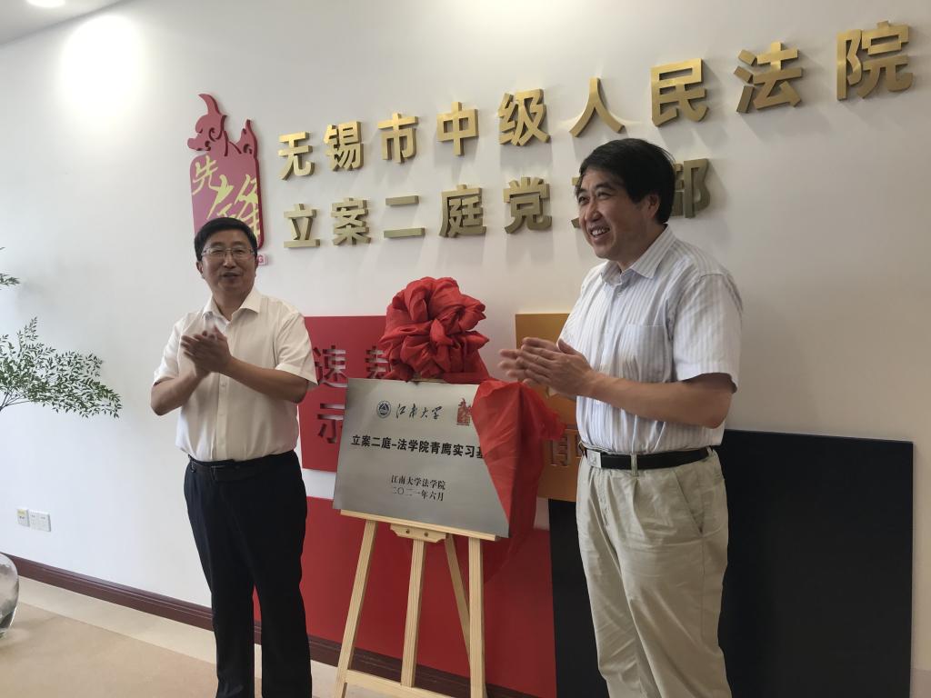 为深入落实“我为师生办实事”,切实提高法学院师生的实习教学能力和社会实践能力。6月29日上午,江南大学法学院与无锡市中级人民法院立案二庭正式签署江南大学法学院校外实习基地协议。签约仪式在无锡市中级人民法院举行。无锡市中级人民法院党组副书记、副院长蒋飞携立案二庭全体成员,法学院党委书记杨杰、副院长叶敏、以及专业老师代表出席签约仪式。
