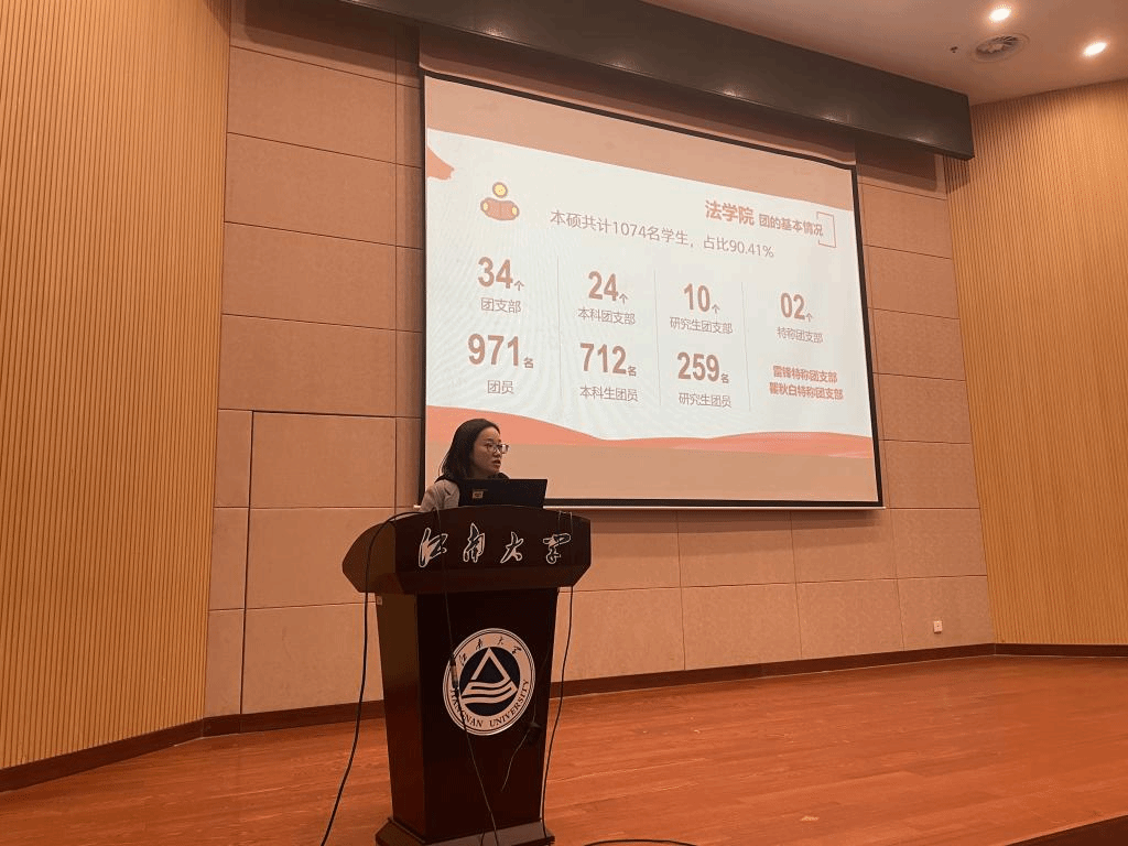 11月23日下午,法学院2022年团学工作总结大会于远东报告厅召开。法学院分团委书记徐雅静及法学院学生会、研究生会全体成员出席了本次大会。