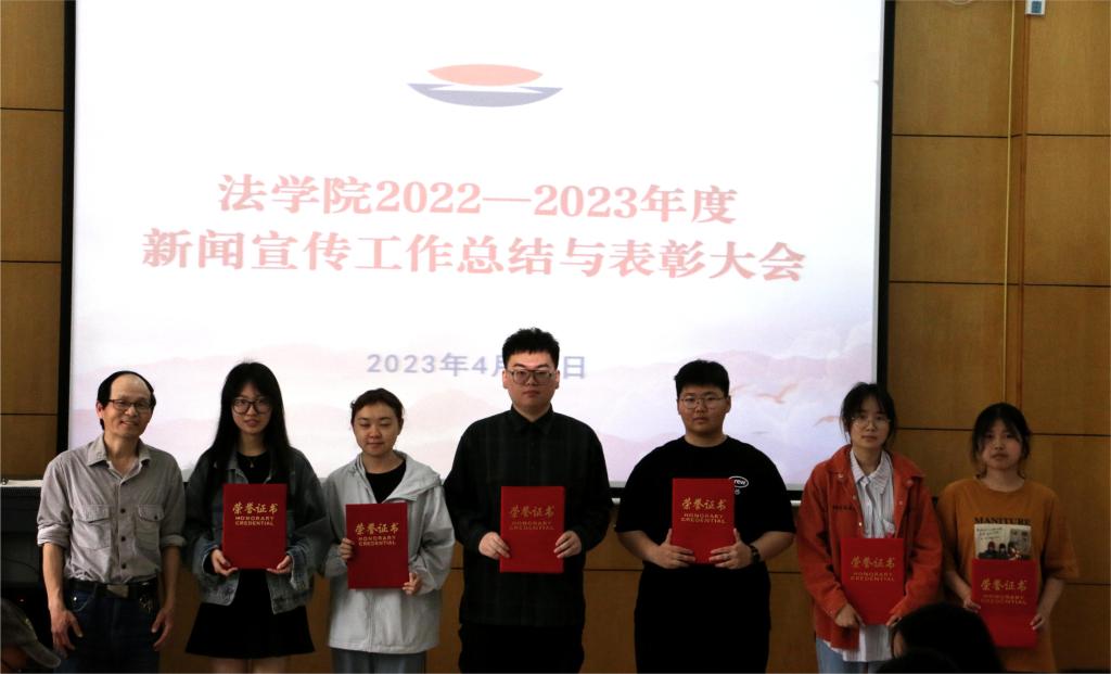 为提升学院新闻宣传工作质量,建设一支强有力的新闻宣传骨干队伍,讲好学院故事,传递学院声音,4月19日下午,法学院于A316会议室召开2022—2023年度新闻宣传工作总结与表彰大会暨新闻宣传学习沙龙第四期。法学院党委副书记、副院长张慧琪,校宣传部胡奕,教务秘书丁伟,分团委书记徐雅静,辅导员缪晶晶以及新闻宣传部20余名同学参加了本次会议,会议由缪晶晶主持。