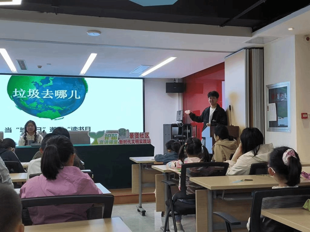 为加强世界地球日与世界读书日宣传推广,倡导绿色生活,提升青少年保护地球和热爱阅读的意识,激发对环保理念和阅读学习的兴趣,4月22日下午,法学院“益治青春”基层治理实践团来到华庄街道景贤社区开展了以“地球日邂逅读书日,共享绿色书香”为主题科普课堂活动。学生王泓勋、刘冉、陈成雷、何雨以及社区30余名小朋友和家长参与了本次活动。