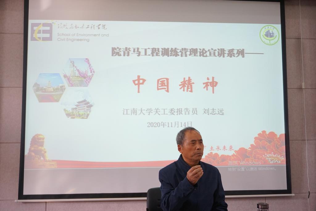 11月14日,环境与土木工程学院在学院楼D303会议室举办青马工程训练营理论宣讲系列——“中国精神”宣讲会。本次宣讲会由江南大学关工委刘志远同志主讲,院团委书记、学工办主任蒋达锋老师主持,第九届青马工程全体学员参与了本次活动。