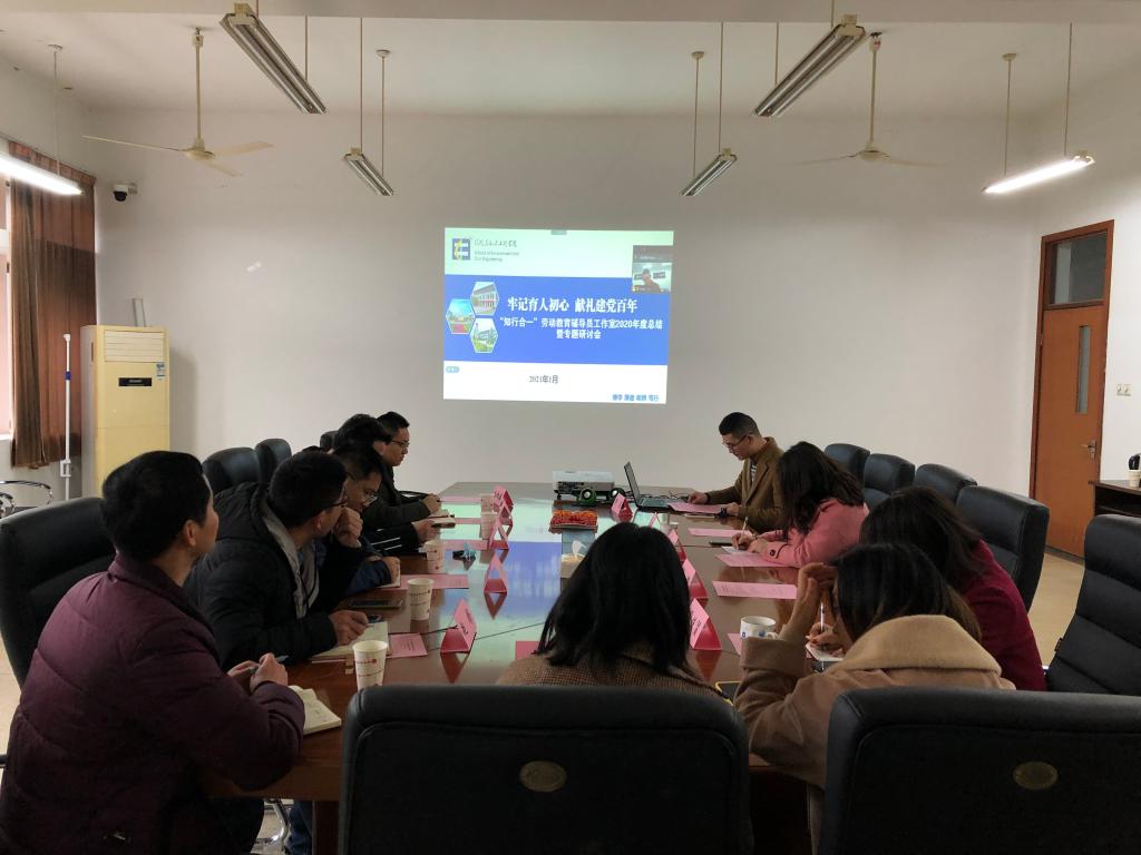 1月21日,“知行合一”劳动教育辅导员工作室在环境与土木工程学院召开2020年度总结暨“牢记育人初心,献礼建党百年”专题研讨会。环境与土木工程学院党委副书记兼副院长胡娟、校学工处思想政治教育科科长徐璐、学工处研究生工作办公室副科长刘聪,工作室全体成员,各学院辅导员代表参加会议。会议由工作室负责人何涛主持。