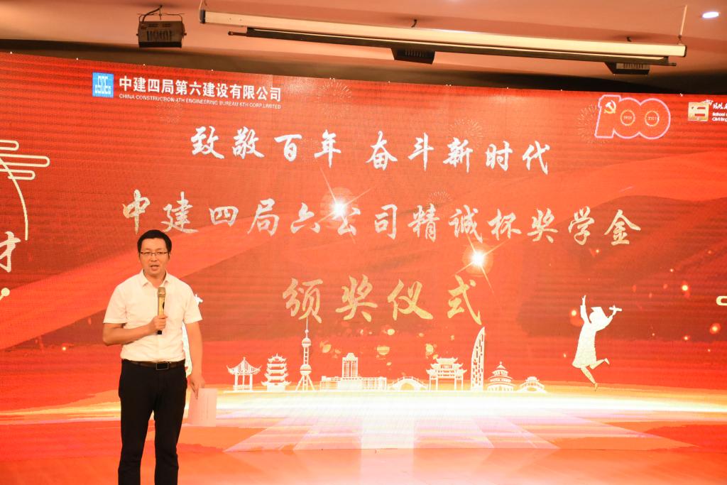 随着暖场视频《强国一代有我在》的播放,晚会正式开始。李艳在致辞中对毕业生们的收获表示祝贺,用“环土英才,建设未来”勉励毕业生牢记习近平总书记嘱托,让青春在为祖国、为民族、为人民、为人类的不懈奋斗中绽放绚丽之花。随后,车其杰宣读了中建四局六公司“精诚杯”奖学金获得者名单,领导、老师为学生颁奖。