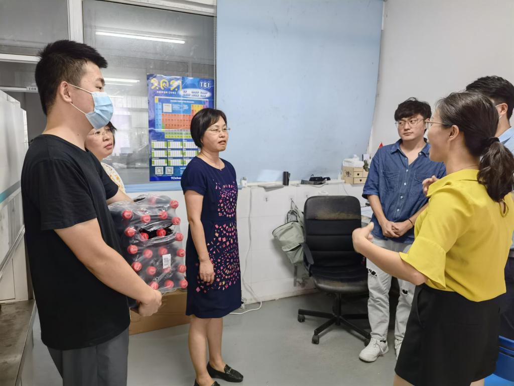 9月17日,环境与土木工程学院党委书记李艳,党委副书记、副院长胡娟,学工办主任周佳赟,辅导员薛羚伟、何涛、李东辉,携慰问品前往学生宿舍、实验室慰问留校学生。