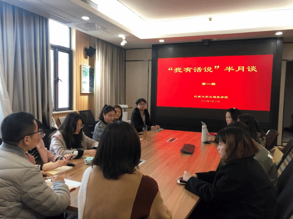 2019年3月11日下午,江南大学无锡医学院首期“我有话说”半月谈活动在医学院C207会议室举办。医学院分团委书记林丹、辅导员吴杰以及经第二课堂系统自主报名的9位同学参加了此次活动。
