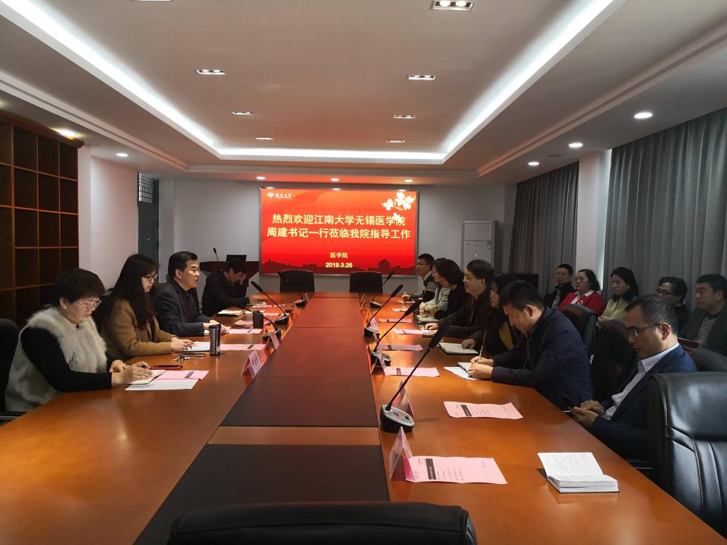 3月26日,党委书记周建、教务处副处长孙子文、党委副书记副院长奚晓岚、副院长赵鹏、陈雪、附属医院副院长祝黎洁、教育科负责人王建中以及附属医院各教研室负责人一行19人赴扬州大学医学院调研。扬州大学医学院院长史宏灿、副院长钱莉、综合办公室主任王芬、团委书记学工办主任许金鑫、教学办公室副主任葛扬军等出席了调研座谈会。