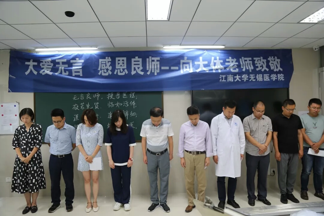 “大体老师”是医学生对学习解剖学的尸体标本的尊称,他们为医学事业做出了伟大的贡献。为了表达对“大体老师”的缅怀与哀思,医学院于2019年9月10日下午在学院楼D209举行了“大爱无言,感恩良师”局部解剖学开课暨大体老师致礼仪式。医学院党委书记周建,医学院院长陈永泉,副院长赵鹏、陈雪,医学院院长助理兼公卫系主任程洋,院长助理兼基础医学系主任吴国胜,院长助理兼护理系主任蒋玉宇,院长助理兼实验中心主任、工会主席冯磊,辅导员以及基础医学系教师代表等出席了本次仪式。仪式庄严肃穆,由医学院党委副书记、副院长奚晓岚主持。