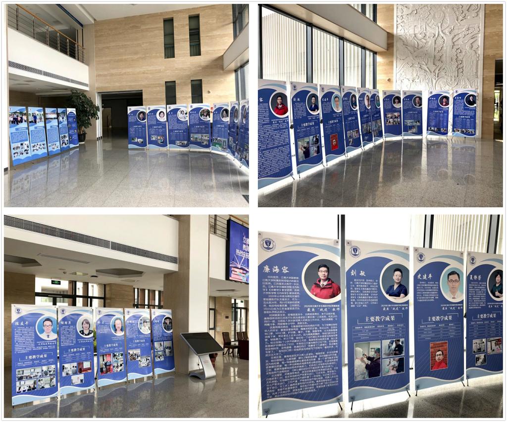 为展现医学院和附属医院广大教师立足教育教学岗位助力打赢新冠肺炎疫情防控阻击战、线上教学攻坚战的精神风貌,医学院评选出2019-2020年度最美战役教师6名、优秀教师8名、优秀临床带教老师5名、优秀教学奖4名和优秀教学集体4个。评选结束后,在医学院学院大厅内举办了获奖教师和获奖教学集体优秀教学事迹展,生动展示当代教师阳光美丽、爱岗敬业、无私奉献的良好形象,以及立德树人、奋勇抗疫、潜心育人的精神风采。
