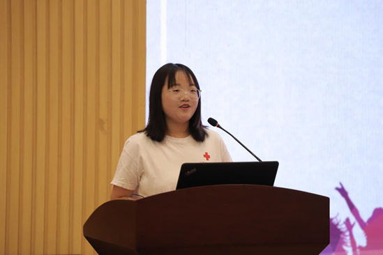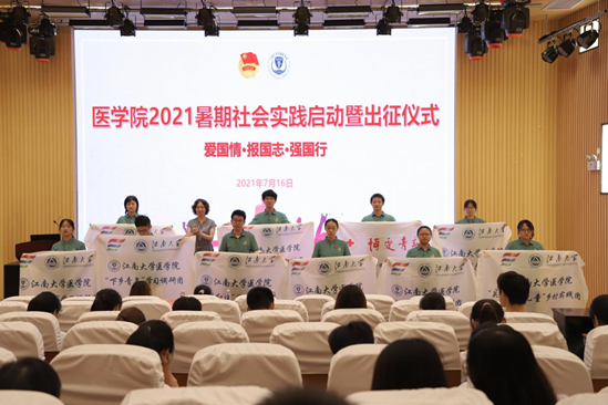 仪式伊始,吴杰介绍了“青春向党·实践筑梦”这一社会实践在学生第二课堂和实践育人中的重要作用。仪式第一项由陈碧云介绍“医学院2021年暑期社会实践”基本情况。阐述了“受教育、长才干、做贡献”的活动宗旨和“医心向党传薪火、青春启航新征程”的活动主题,强调了本次实践活动更加注重专业针对性和活动的实效性。