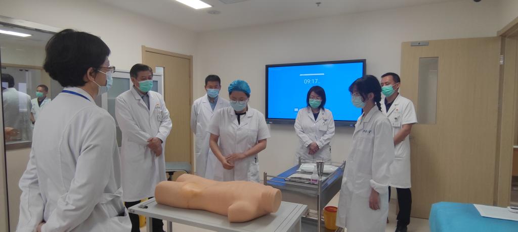 附属医院院长鲁晓杰、医学院副院长赵鹏、附属医院副院长曹宏、教育处处长徐德武巡考临床综合技能考核