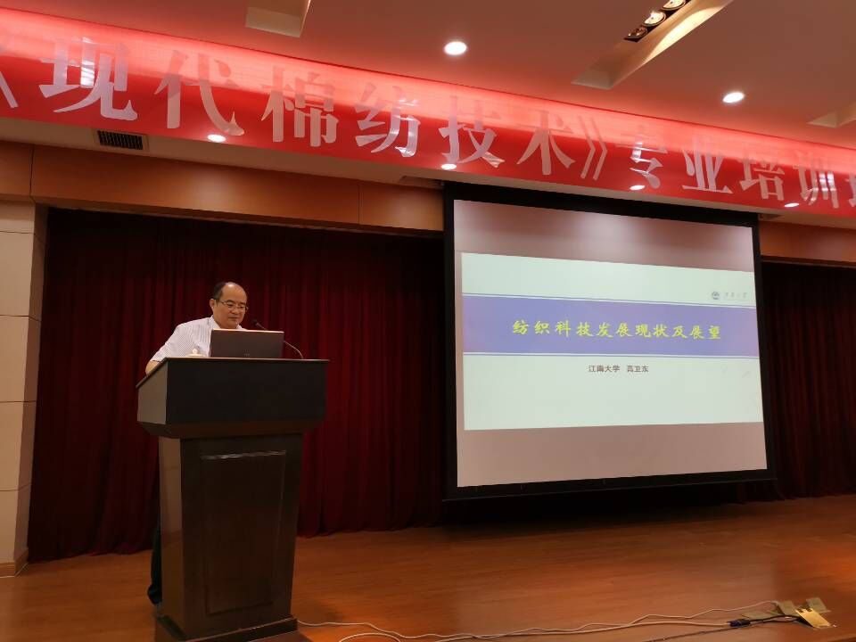 无锡一棉纺织集团党委书记、董事长周晔珺首先在开班仪式上致辞。周晔珺表示,打造国际一流的纺织企业,需要有专业的人才梯队,无锡一棉专注于纺纱与织布,定位四化发展方向即生产智能化,管理信息化,产品特色化,贸易全球化,希望通过专业培训班的开设,打造学习型团队,专业化团队和创新性团队。周晔珺要求广大学员能够珍惜学习机会,端正学习态度,研究学习方法,注重学习效果。随后,高卫东教授致辞,介绍了江南大学纺织服装学院的发展历程,重点阐述了大学在人才培养、科学研究、社会服务和文化传承中的作用,同时也表达了通过培训班的开设,为企业打造纺织专业技术型团队的愿景。开学典礼结束后,高卫东教授给广大企业学员带来题为《纺织科技发展现状及展望》的特邀报告,从当代科技发展特点及高新领域、当代科技发展特点及高新领域、棉纺织加工技术的科技进展、棉纺织新产品开发技术、非织造技术与产业用纺织品、棉纺织科技展望等六方面诠释了纺织科技的现在和未来。