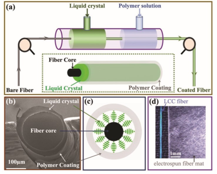 近日,我校纺织服装学院付少海团队在国际权威期刊Advanced Materials上发表了题目为“Responsive Liquid-Crystal-Clad Fibers for Advanced Textiles and Wearable Sensors”的学术论文(Advanced Materials,2019,21.95)。论文将纤维通过液晶微胶囊分散体、聚合物溶液制备了对外界刺激具有响应性的液晶复合纤维,其中纤维提供力学强度,液晶小分子作为响应性涂层,高聚物对涂层起稳定作用。与以往液晶芯纤维相比,该技术制备响应性液晶复合纤维方法简便,可控程度更高,对于制备新型的可穿戴柔性智能显示材料具有重要的启发意义。