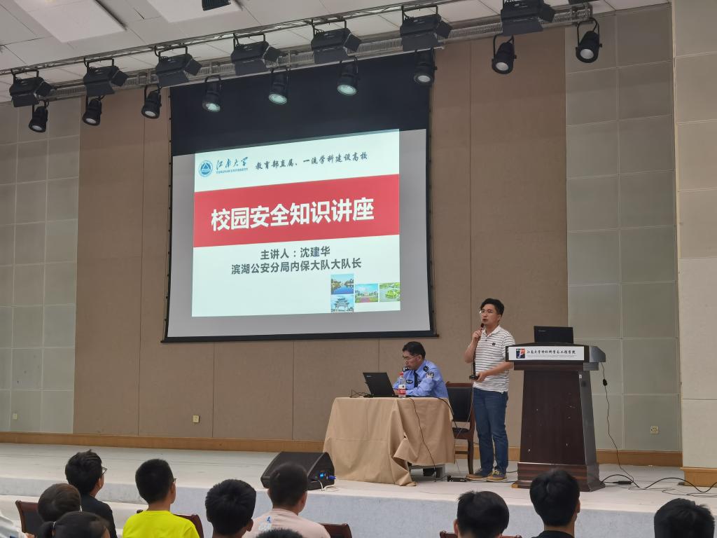 为切实做好新生入学转型教育工作,提高2020级本科生安全意识,近日,纺织科学与工程学院在学院C区活动中心举办2020级本科生安全知识讲座。本次讲座邀请无锡市滨湖区公安分局内保大队大队长沈建华警官主讲,由学院2020级新生辅导员陈裕主持。