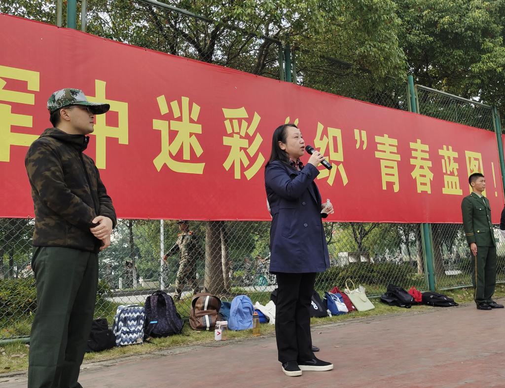 随后,张菁代表学院表达了对新生们的关心和祝福,赞扬了新生们在军训中所展现出的坚韧不拔的优良品质,同时也对新生军训提出了三点要求:第一,要珍惜军训这次锤炼意志的机会,在军训中培养吃苦耐劳的优秀品质;第二,要有组织纪律意识,把“军营”里的规矩行到实处;第三,要向教官学习“听党指挥、能打胜仗、作风优良”的精神,临近军训成果汇报,要更加努力训练,做到善始善终,在最后的军训成果汇报中,展现江南纺织学子的青春风采。