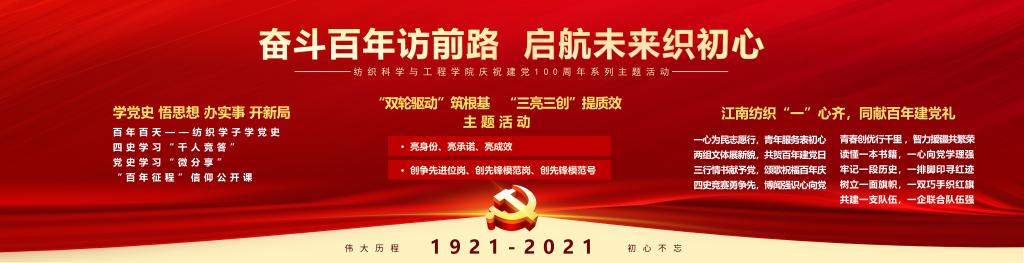 三是,媒体联动,营造学习氛围。通过学院、学生组织新媒体平台,开展“百天百讲学党史”“学习纺织”“党史知识竞赛”等;学院制作师生党员“亮承诺”展板,策划“寻访锡城纺织业地标 百年‘布码头’薪火相传”精品微党课微视频,制作“纺织学子唱响《百年》”专题视频,辅导员工作室推出“师生说江南”专题栏目等,营造浓厚的党史学习氛围。