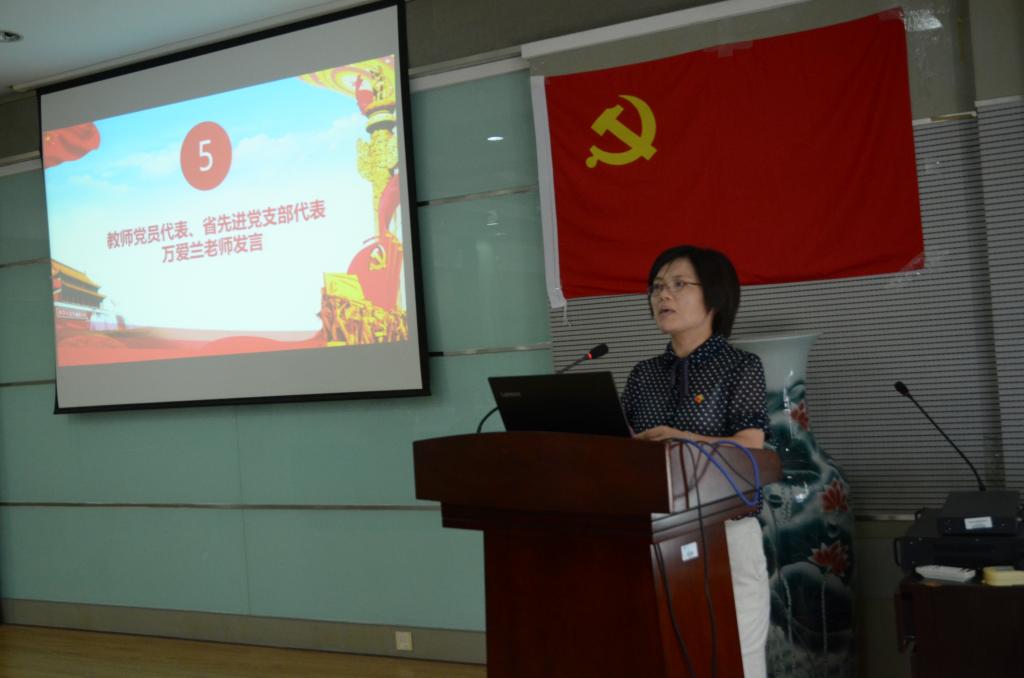 针织所教师党支部书记万爱兰老师作为教师党员代表、江苏省高校先进基层党组织代表发言。万爱兰就针织所教师党支部的发展成果进行总结汇报,并提出了对未来的展望,支部将紧紧跟随纺织行业的发展需求,以优秀的科研成绩献礼建党100周年,全体教师党员将把表彰化为鼓励和鞭策,在今后继续努力,不懈奋斗。