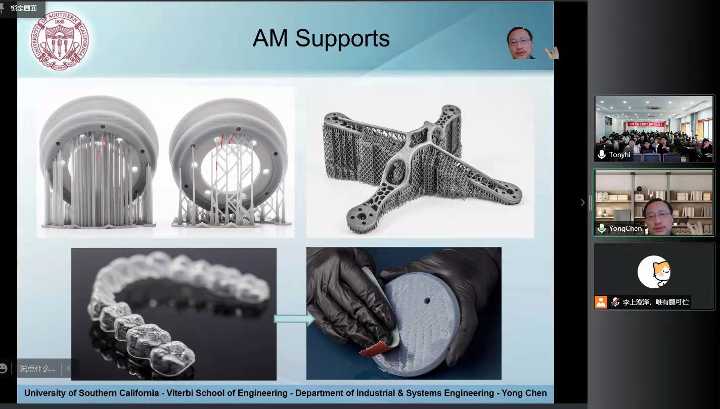 12日上午,在机械学院C302举行第二次特邀专家学术报告会。南加州大学(USC)Yong Chen教授作题为“多材料混合增材制造”的学术报告,主要介绍了3D打印技术的诸多创新研究进展。浙江大学陈远流教授作题为“跨尺度超精密制造的检测技术”的学术报告,重点展示了大行程空间多误差分量在线精密测量机理与方法等研究现状。