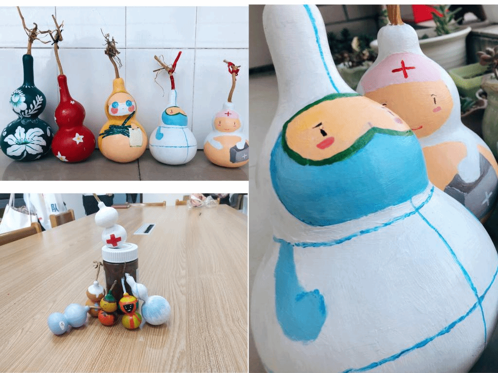 “小葫途”团队成立于2018年,团队坚持把扶贫和公益相结合,以“设计创新和传统文化融合,做中国葫芦的布道者”为理念,3年来走过5个省,21个贫困县,帮助100多贫困户脱贫致富,为3000余名留守儿童送去温暖,募集物资20余万元用于公益。项目荣获了包含“互联网+”江苏省赛三等奖在内的多项奖项。2020年暑假,团队主创人员将葫芦与防疫相结合,在天然葫芦上画出白衣天使,并将防疫中草药嵌入葫芦主体中,创造性的提出“防疫文创葫芦”的理念。利用线下线上两种途径,“一体两翼”开展社会实践。以无锡线下为主体,走进高校、社区,引导居民、学生在葫芦上画出自己心中白衣天使的样子,现场教授他们制作防疫文创葫芦;以云南、贵州为两翼,深入贫困山区,将防疫知识和红十字会“博爱 青春 人道”的志愿服务精神送到留守儿童身边。团队回访贵州,了解留守儿童的疫情防护现状,将疫情防控的语音小贴士植入到去年捐赠的智伴机器人中,使学生在开机学习时,能不断获得疫情防控的锦囊妙计。团队和云南尹兆场小学携手,为山区的孩子多次开展线上活动,比如远程教授防疫文创葫芦制作,邀请心理学专家为孩子们讲授疫情下心理调适的方式方法,邀请新冠康复者、医护人员子女等现身说法,讲授特殊经历等,让孩子们体会中国共产党对“视民如伤”的炙热情怀以及国家对“人民至上”的价值坚守。