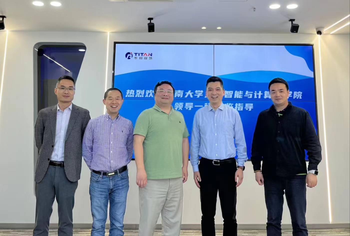 江苏泰坦智慧科技有限公司董事长郑龙对学院一行的到访表示热烈欢迎,表示泰坦智慧是一家以人工智能业务、算法及系统融合为基础,以与谷歌TensorFlow同源的数据流技术为优势的科技创新公司,在专业上与人工智能与计算机学院有极高的匹配度,希望双方能进一步深化供需对接,在人才培养、实习就业、科学研究、产业应用等方面展开广泛深入合作。