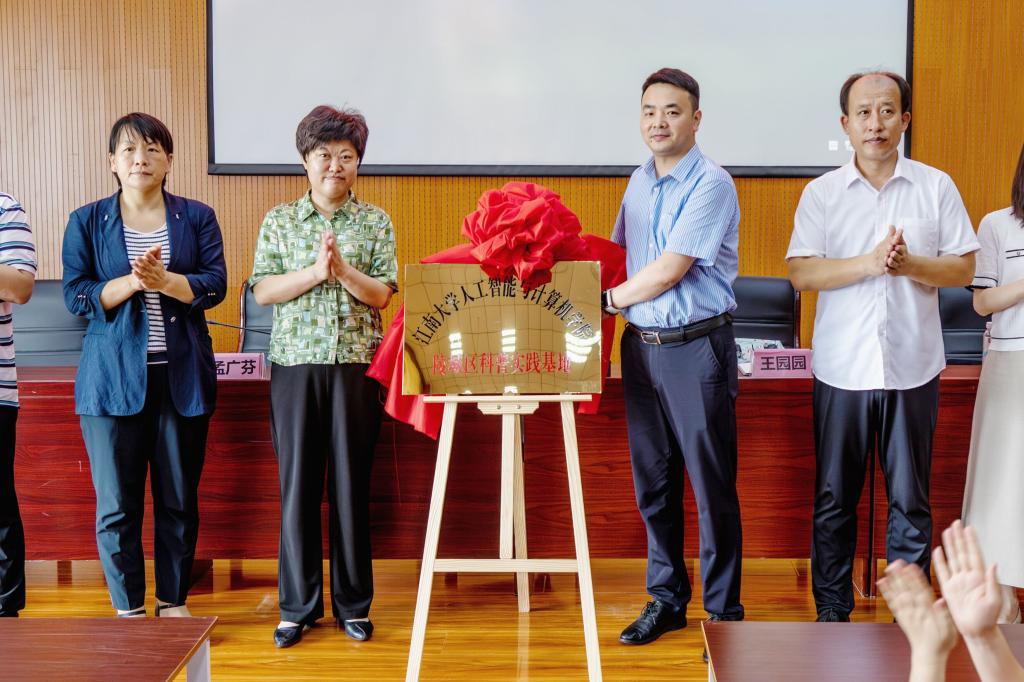 钱鹏江介绍了学院的教育教学情况,并感谢陵城区为学院学生提供宝贵的社会实践机会。他指出,此次校地双方合作建立大学生社会实践活动基地,是学习贯彻习近平新时代中国特色社会主义思想主题教育的重要举措,也是实践育人的重要载体。学院长期以来根据政府、学校、乡村等实际需求,找准服务“发力点”,充分发挥学院专业优势,有效整合资源,将学院品牌社会实践项目走深走实。随后,双方领导共同为陵城区科普实践基地揭牌;人工智能与计算机学院学工办主任兼分团委书记王园园向孟广芬赠送由人工智能与计算机学院陈璟老师主编的少儿编程书籍。