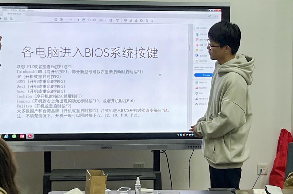 12月5日开始,计算机本科第二党支部陆续组织电脑维修培训,涵盖电脑内部清灰、C盘清理、重装系统、键盘鼠标清洁等方面的专业知识。志愿者通过理论学习和实际操作,为此次志愿活动提供了坚实的技术支撑。