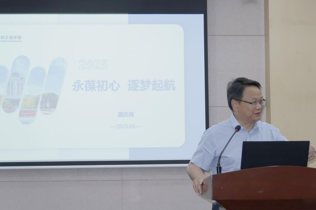 首先,潘庆伟以“永葆初心,逐梦起航”为主题开展专题教育党课。围绕“不忘初心”“饮水思源”“笃行奋进”三个方面,通过解读中央八项规定精神和违纪违法典型案例,教育毕业班党员同志们要在未来的人生路中坚守信念,守正循矩,做品行端正的人。同时,他也对毕业生们表达了美好的祝福,希望毕业生党员要成为有信仰,有情怀,能实干的立体的社会人,要立志做有理想、敢担当、能吃苦、肯奋斗的新时代好青年,将个人理想融入实现中华民族伟大复兴的中国梦之中。