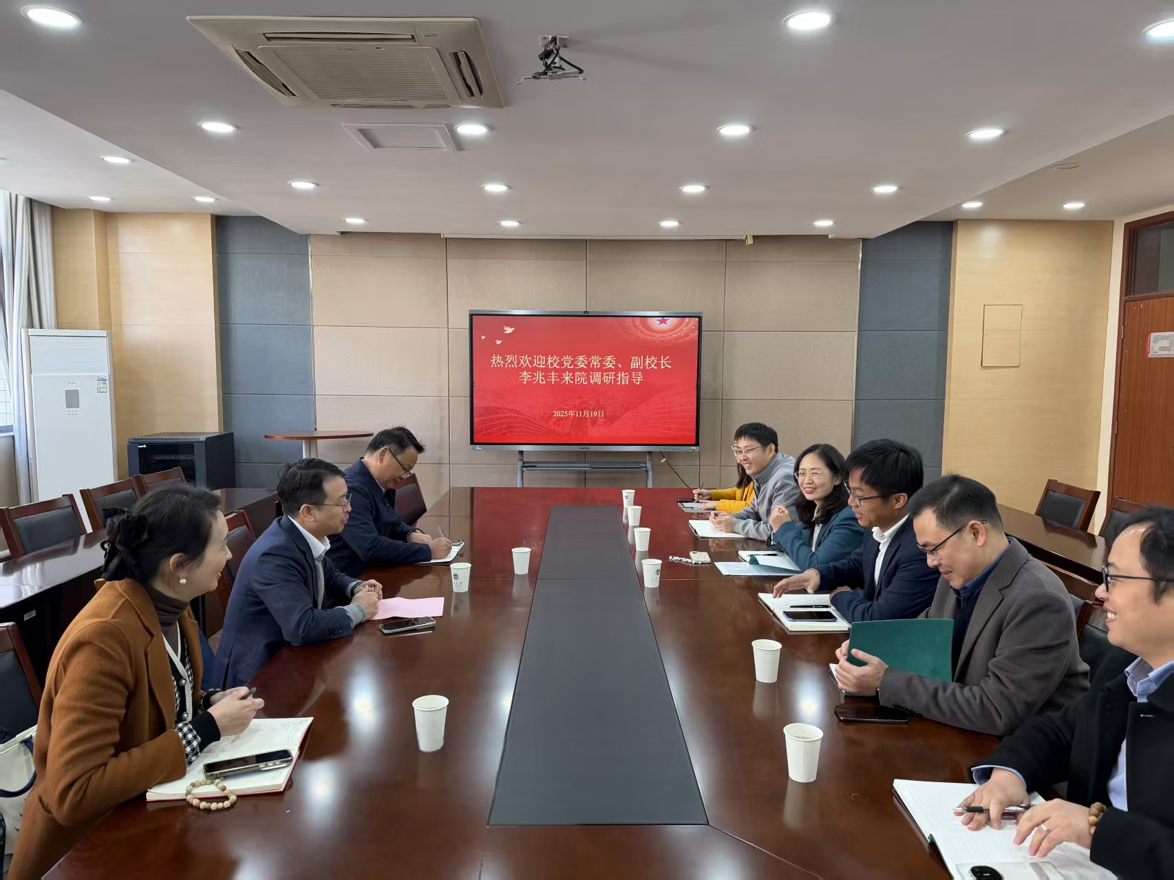 11月19日上午,校党委常委、副校长李兆丰一行深入化学与材料工程学院开展调研,宜兴校区管理办公室主任潘庆伟、学院领导班子成员参加会议。
