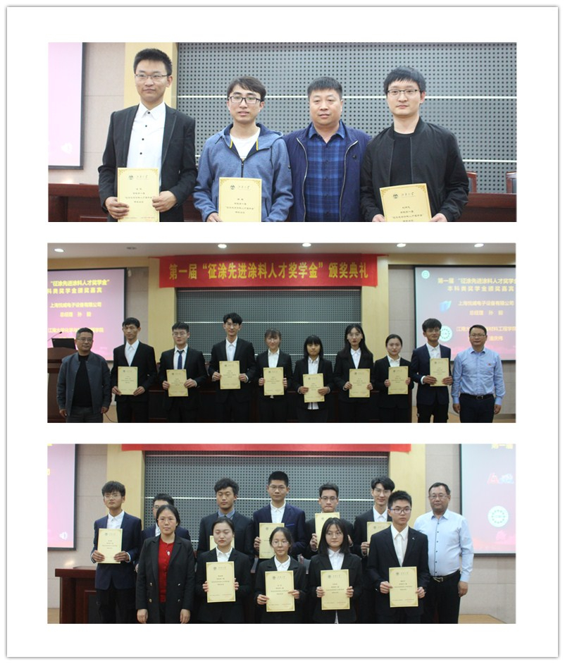 11月15日下午,化学与材料工程学院第一届“征涂先进涂料人才奖学金”颁奖典礼在化工楼B329会议室隆重举行。江苏广信感光新材料股份有限公司副总经理安丰磊,滁州金桥德克新材料有限公司总经理王景泉,江苏开磷瑞阳化工股份有限公司副总经理覃福作,上海悦威电子设备有限公司总经理孙毅,无锡阿科力科技股份有限公司董事长朱学军,江南大学光聚合技术及先进涂层研究室教授刘晓亚,化工学院党委书记潘庆伟,党委副书记、副院长田卫平出席本次典礼。颁奖典礼由化工学院副院长刘仁主持。