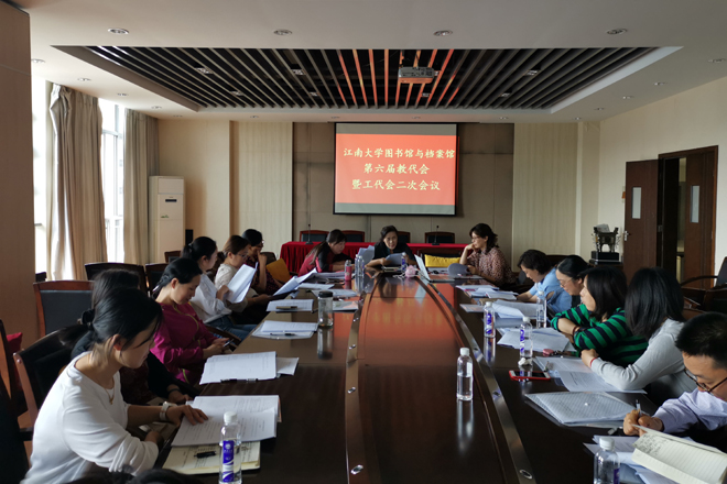 5月28日下午,图书馆与档案馆第六届教代会暨工代会二次会议在图书馆十楼会议室召开。两代会正式代表43人参加了会议。大会由图书馆与档案馆副馆长邬洋主持。
