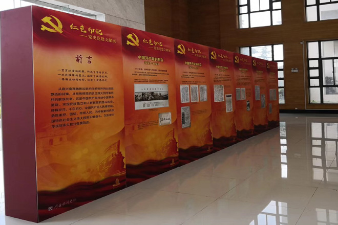党史党建文献展呈现了党在大革命时期、土地革命战争时期、全民族抗日战争时期和全国解放战争时期的珍贵史料,反映了中国共产党波澜壮阔的发展历程。一幅幅生动的旧影诉说了峥嵘岁月里从嘉兴南湖扬帆起航的红船到井冈山高高飘扬的战旗,从熊熊燃烧的抗日烽火到夺取胜利的解放战争,再现了中国共产党开辟中国革命道路、实现民族独立和人民解放的奋斗历史。
