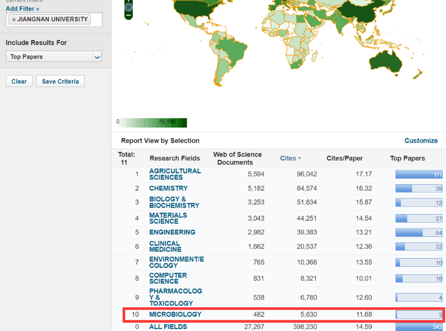 5月ESI数据显示我校微生物学(MICROBIOLOGY)论文482篇,总被引次数5630次,表现强劲,首次进入ESI全球排名前1%,全球排名第650位。