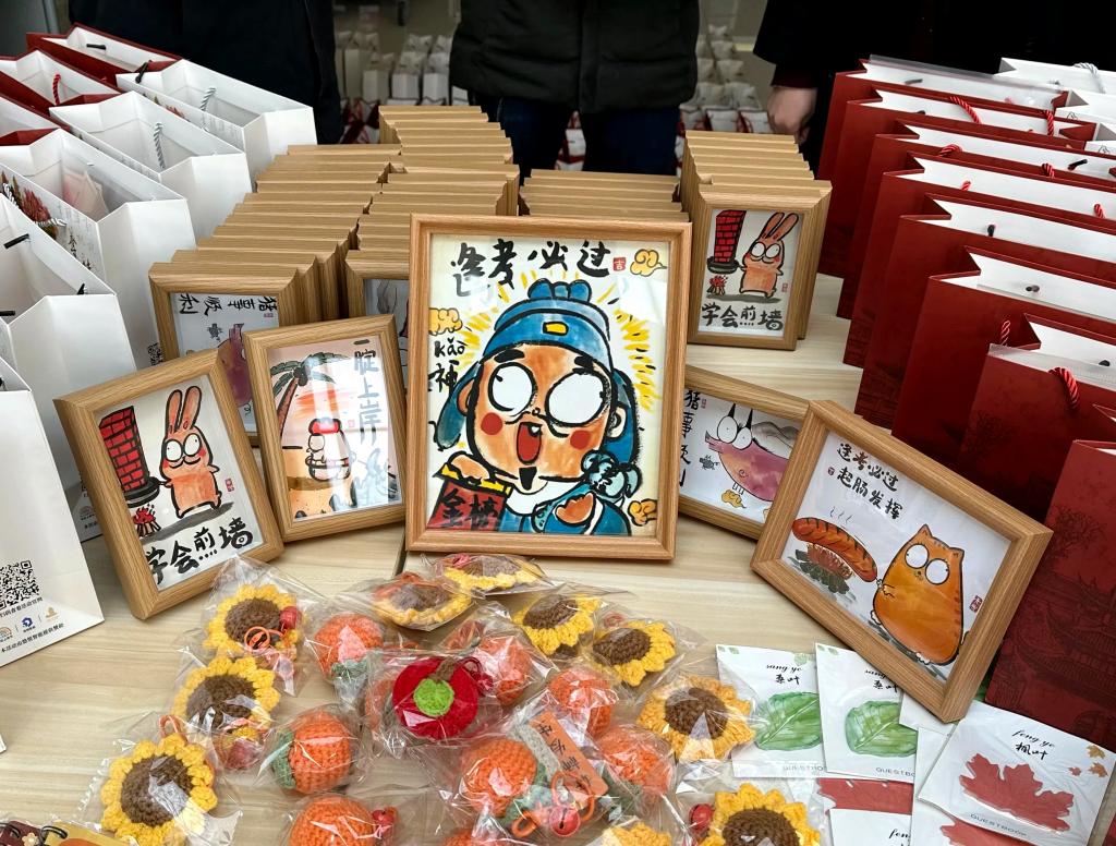 图书馆精心筹备、周密安排,在一楼大厅布置考研祝福展板,并为备战考研的同学准备了寓意深远的上岸礼物。除专属定制的印有“上海文庙、江南贡院、孔庙、国子监、嵩阳书院、白鹿洞书院、岳麓书院、应天书院”等古代学府文化元素图案的考研助力大礼包外,还准备了励志文创相框、好柿发生挂件、图书馆特色四季卡套及鼋元手机支架等小礼物,每一份礼物都承载着图书馆对考研学子深深的祝福与期待。
