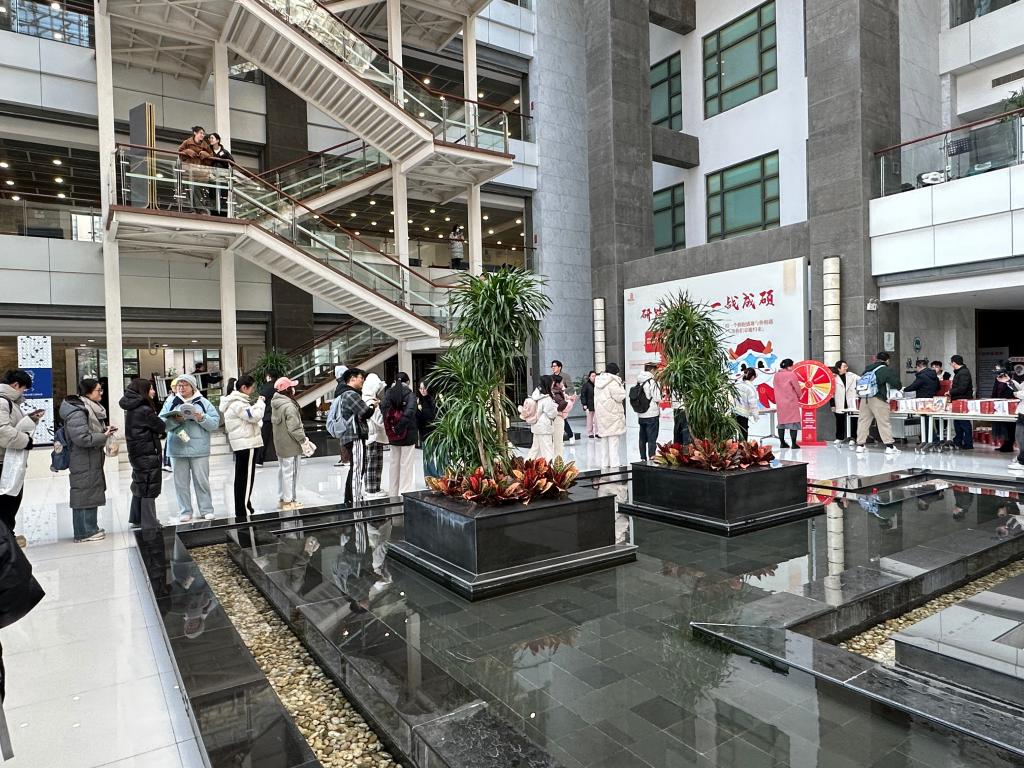 为了营造更加轻松愉快的氛围,图书馆还别出心裁,在活动现场通过幸运大转盘的形式,为考研学子们送上惊喜与祝福。每当转盘轻轻旋转,便仿佛带动着源源不断的好运,让在场的每一位考研学子深切地感受到了图书馆那份温情关怀与热忱鼓励。活动现场气氛热烈,吸引了超过500名考研同学的热情参与。现场的同学们纷纷表示,备考的冬日虽然寒冷,但是收获了一份来自图书馆的专属温暖,进一步坚定了考研的信心与决心。