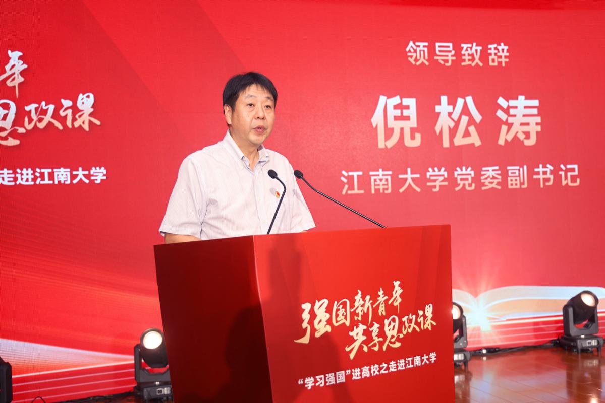 倪松涛代表江南大学对各位嘉宾和师生的到来表示欢迎。他介绍,学校高度重视“学习强国”学习平台的推广使用工作,不断依托平台的内容优势、资源优势和传播优势,深化立德树人机制综合改革,积极探索打通党的创新理论触达青年群体“最后一公里”的有效路径。他表示,江南大学将致力与“学习强国”学习平台以及联盟成员单位目标上同向、思想上同频、行动上同步,让党的创新理论入脑入心,涵育时代新人。