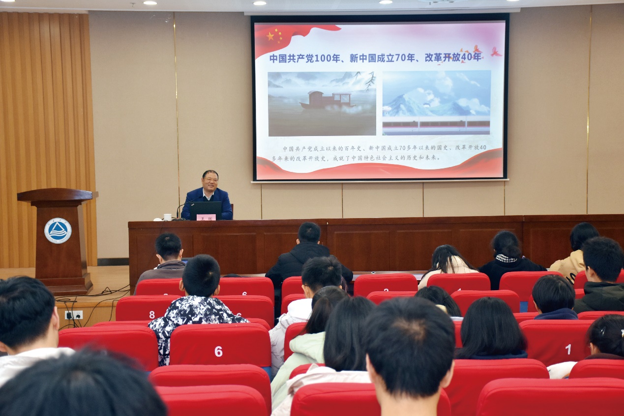 11月26日下午,至善讲坛史说中国系列讲座《说“四史”强“自信”》在图书馆三楼报告厅如期举行。南京师范大学马克思主义学院院长,博士生导师王刚教授详细阐述了开展四史教育的意义和路径,为同学们学习贯彻党的创新理论指明方向。